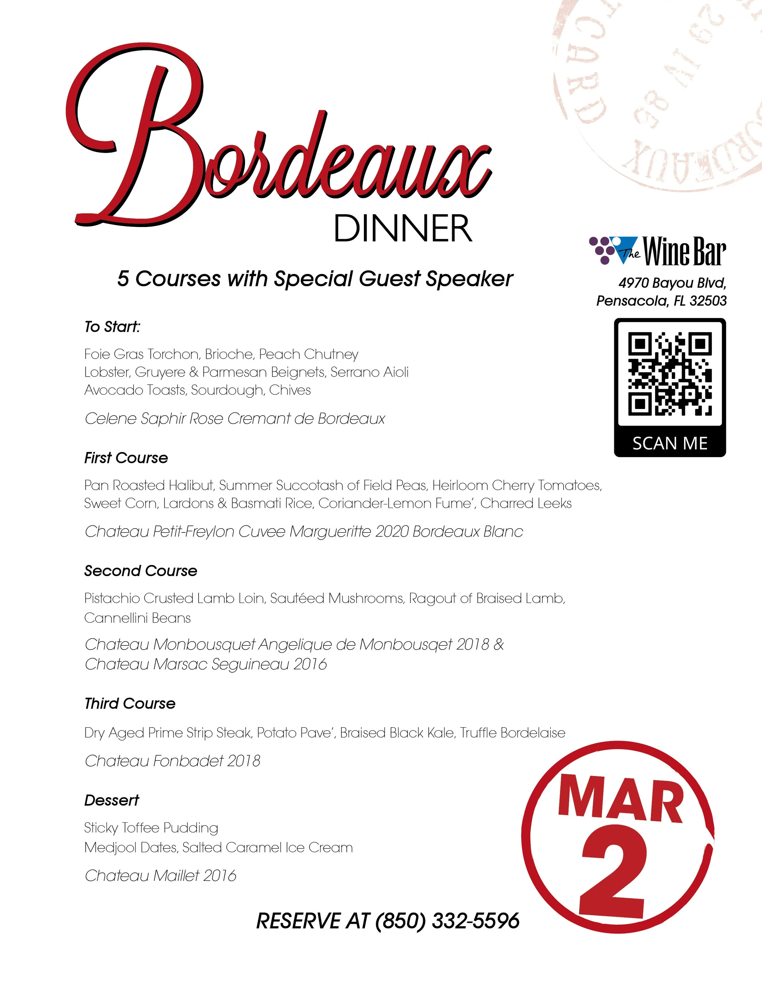 Bordeaux is the perfect pairing for the incredible menu from our Chefs at The Wine Bar in Pensacola!