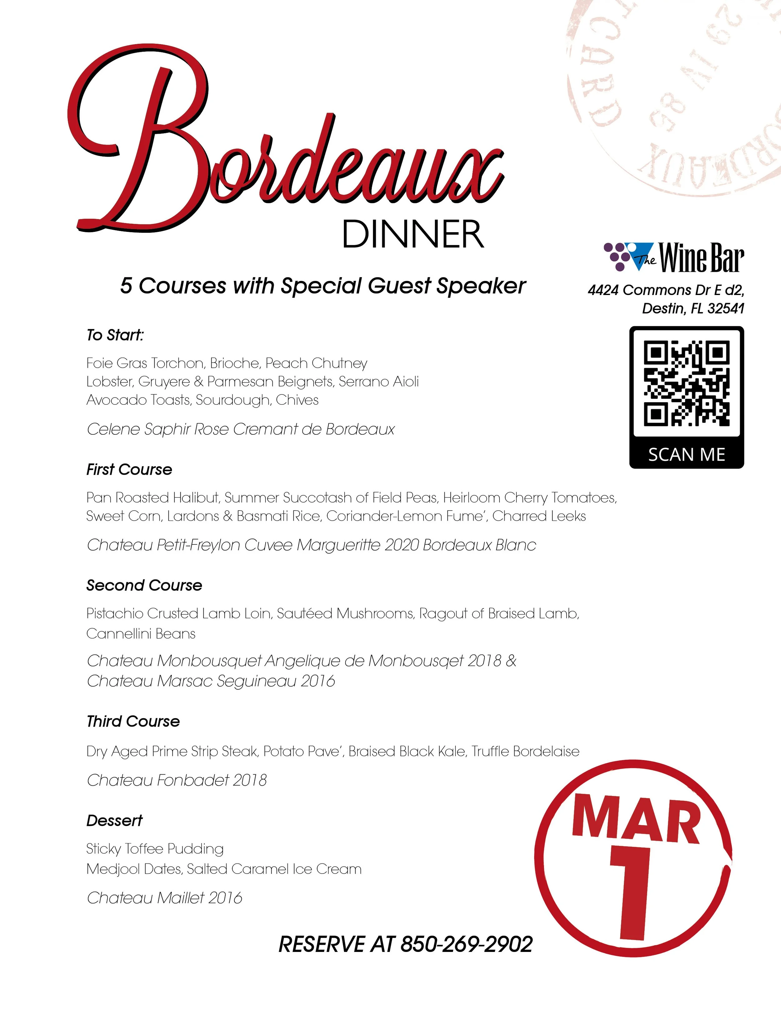 Bordeaux is the perfect pairing for the incredible menu from our Chefs at Destin’s The Wine Bar!