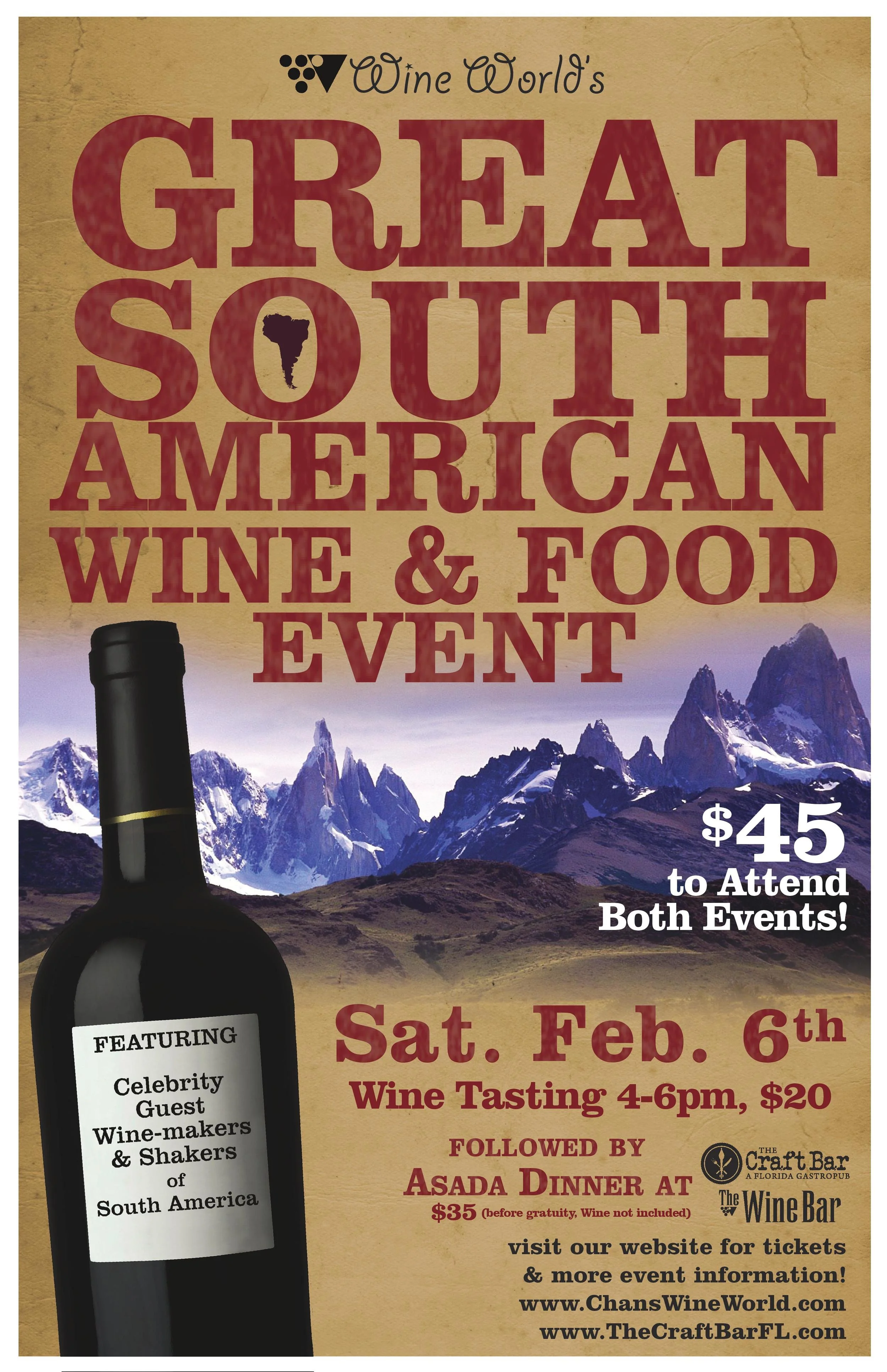 TWO GREAT EVENTS: South American Wine Tasting & South American Dinner