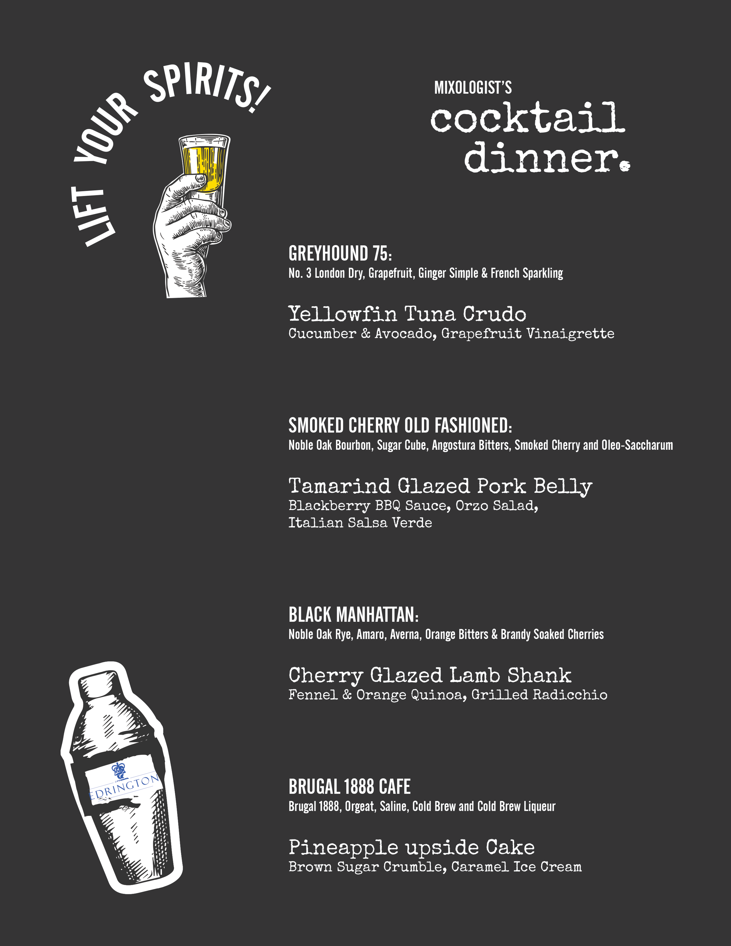 A delicious dinner prepared by our area’s best Chefs paired beautifully with 4 premium cocktails!