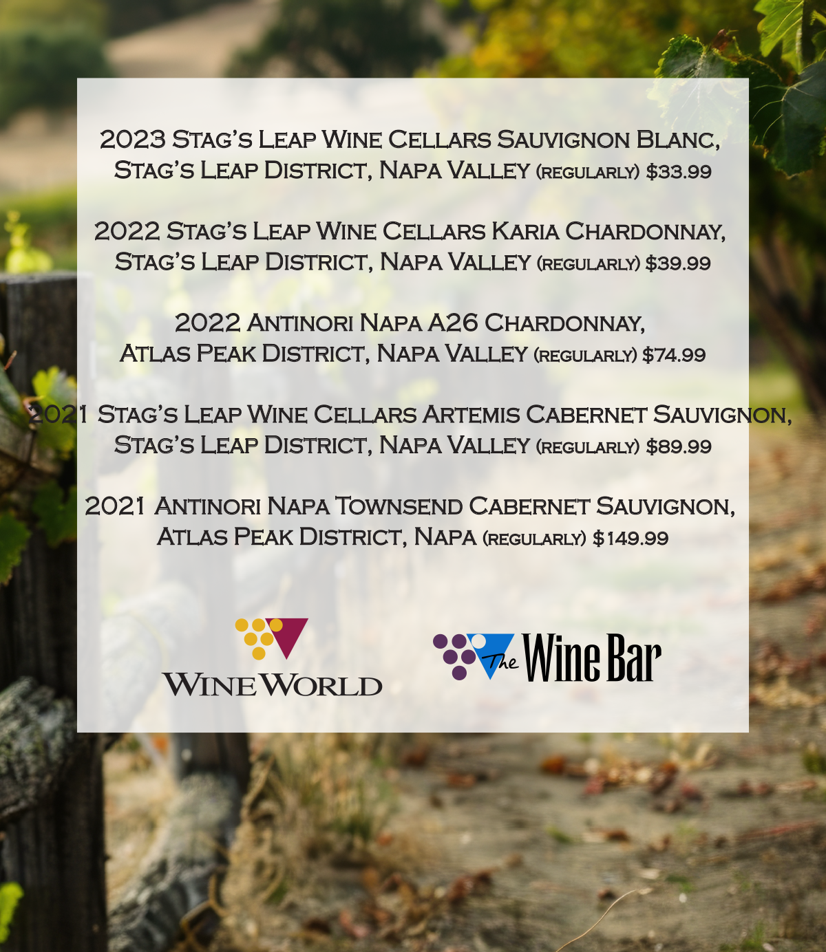 Award-Winning Wines: Experience the legendary Stag's Leap and Antinori Napa Valley wines, expertly paired with four gourmet courses.